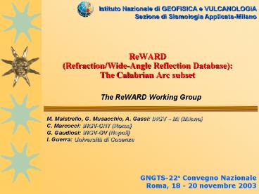 Title: ReWARD (Refraction/Wide-Angle Reflection Database): The Calabrian Arc subset