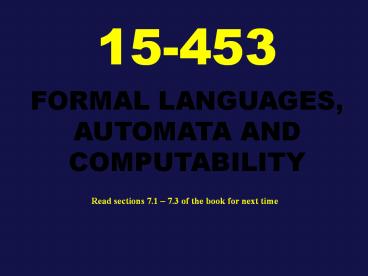 Title: FORMAL LANGUAGES, AUTOMATA AND COMPUTABILITY