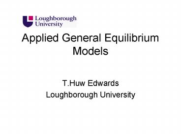 <Notice: Removed> Applied General Equilibrium Models PowerPoint PPT Presentation