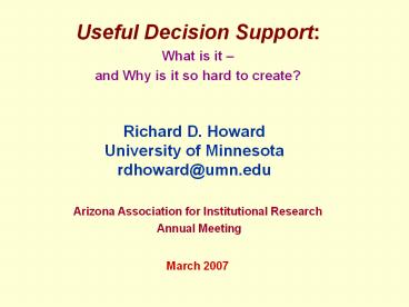 <Notice: Removed> Useful Decision Support: PowerPoint PPT Presentation