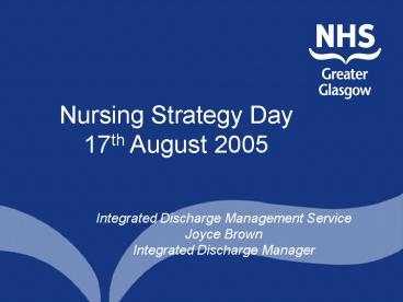 Integrated Discharge Management Service Joyce Brown Integrated Discharge Manager PowerPoint PPT Presentation