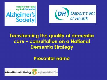 <Notice: Removed> Transforming the quality of dementia care consultation on a National Dementia Strategy Presenter nam PowerPoint PPT Presentation