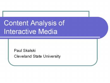 <Notice: Removed> Content Analysis of Interactive Media PowerPoint PPT Presentation