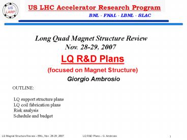 LQ RD Plans (focused on Magnet Structure)