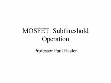 MOSFET: Subthreshold Operation PowerPoint PPT Presentation