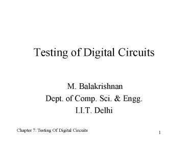 Title: Testing of Digital Circuits