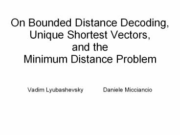 all instances of a lattice problem - Possible to base cryptography on worst-case