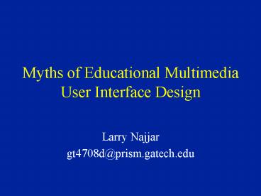 <Notice: Removed> Myths of Educational Multimedia User Interface Design PowerPoint PPT Presentation