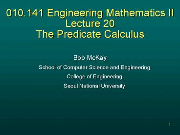 Title: 010'141 Engineering Mathematics II Lecture 20 The Predicate Calculus