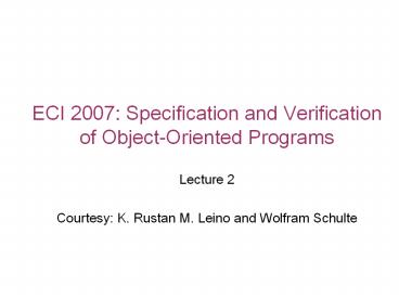 <Notice: Removed> ECI 2007: Specification and Verification of Object-Oriented Programs PowerPoint PPT Presentation