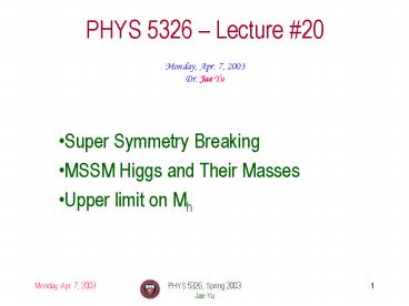 Monday, Apr. 7, 2003 Dr. Jae Yu
