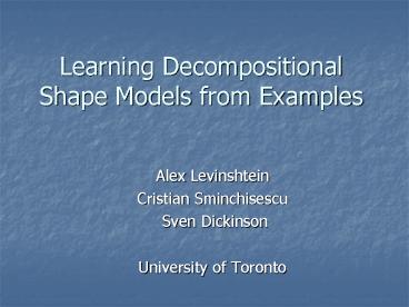<Notice: Removed> Learning Decompositional Shape Models from Examples PowerPoint PPT Presentation