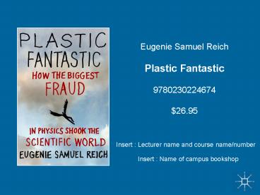 Eugenie Samuel Reich Plastic Fantastic 9780230224674 $26'95 PowerPoint PPT Presentation