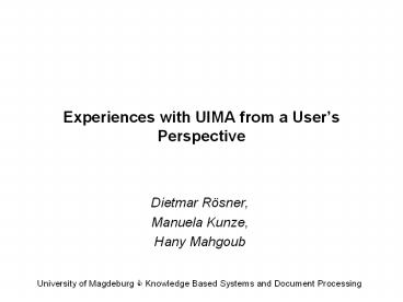 <Notice: Removed> Experiences with UIMA from a User PowerPoint PPT Presentation