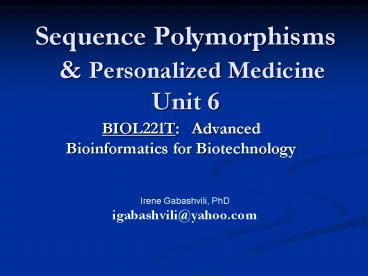 Sequence Polymorphisms PowerPoint PPT Presentation