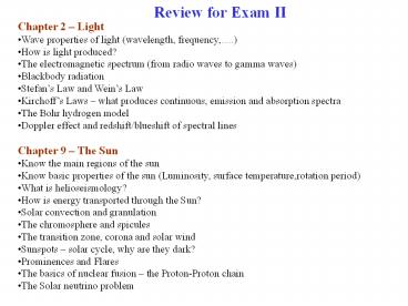 Review for Exam II PowerPoint PPT Presentation