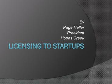 <Notice: Removed> Licensing to Startups PowerPoint PPT Presentation