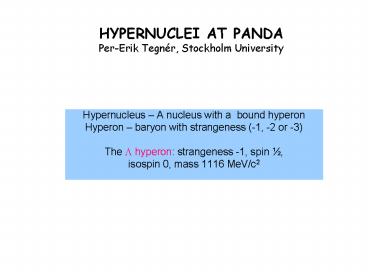 Title: HYPERNUCLEI AT PANDA PerErik Tegnr, Stockholm University