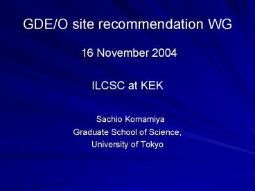 GDEO site recommendation WG PowerPoint PPT Presentation
