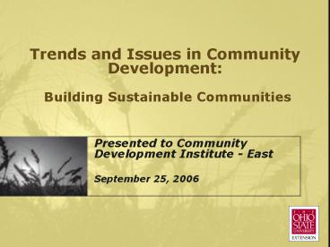 Title: Trends and Issues in Community Development: Building Sustainable Communities