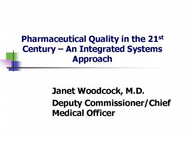 Title: Pharmaceutical Quality in the 21st Century An Integrated Systems Approach
