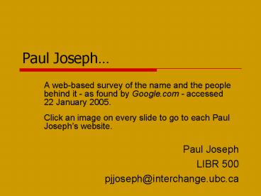 22 January 2005. - Click an image on every slide to go to each Paul