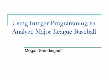 <Notice: Removed> Using Integer Programming to Analyze Major League Baseball PowerPoint PPT Presentation