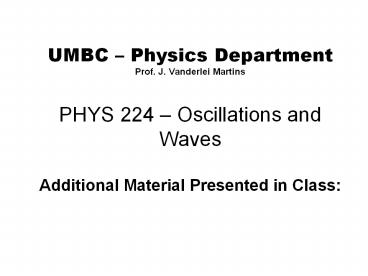 UMBC Physics Department Prof. J. Vanderlei