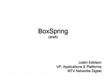 BoxSpring (draft) PowerPoint PPT Presentation