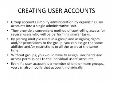 <Notice: Removed> CREATING%20USER%20ACCOUNTS PowerPoint PPT Presentation