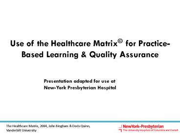 Title: Use of the Healthcare Matrix for PracticeBased Learning