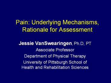 Title: Pain:%20Underlying%20Mechanisms,%20Rationale%20for%20Assessment