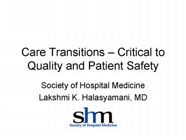 Care Transitions Critical to Quality and Patient Safety PowerPoint PPT Presentation