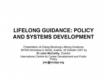 Title: LIFELONG GUIDANCE: POLICY AND SYSTEMS DEVELOPMENT