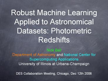 Title: Robust Machine Learning Applied to Astronomical Datasets: Photometric Redshifts