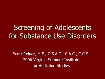 - Scott Reiner, M.S., C.S.A.C., C.A.C., C.C.S.