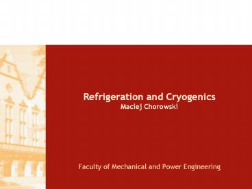 <Notice: Removed> Refrigeration and Cryogenics Maciej Chorowski PowerPoint PPT Presentation