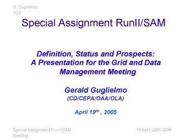 Title: Special Assignment RunII/SAM