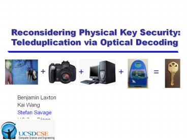 Benjamin Laxton Kai Wang Stefan Savage UC