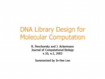 <Notice: Removed> DNA Library Design for Molecular Computation PowerPoint PPT Presentation