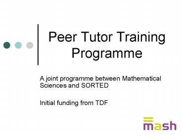 Peer Tutor Training Programme PowerPoint PPT Presentation
