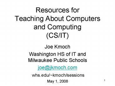 Resources for Teaching About Computers and Computing CSIT PowerPoint PPT Presentation