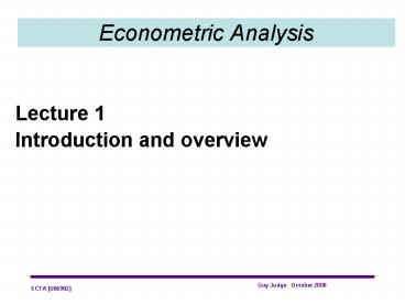 covered in the Introduction to Econometrics unit - To review the use of PcGive for practical