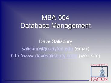 <Notice: Removed> MBA 664 Database Management PowerPoint PPT Presentation