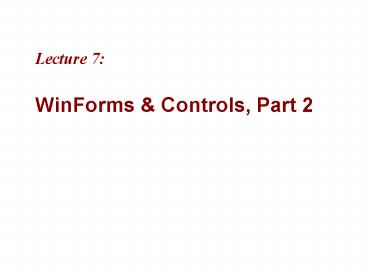 <Notice: Removed> Lecture 7: WinForms PowerPoint PPT Presentation