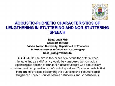 Title: ACOUSTICPHONETIC CHARACTERISTICS OF LENGTHENING IN STUTTERING AND NONSTUTTERING SPEECH