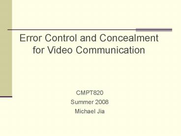 Title: Error Control and Concealment for Video Communication