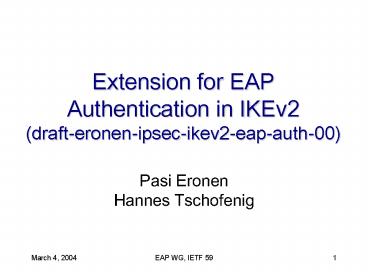 Extension for EAP Authentication in IKEv2 (draft-eronen-ipsec-ikev2-eap-auth-00) PowerPoint PPT Presentation