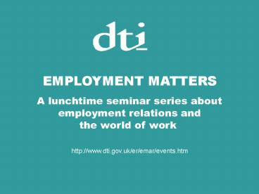 EMPLOYMENT MATTERS A lunchtime seminar series