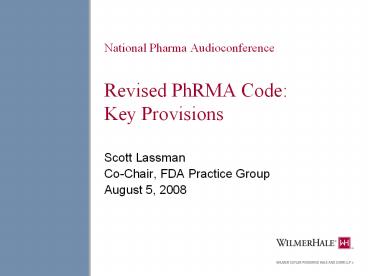 Title: National Pharma Audioconference Revised PhRMA Code: Key Provisions